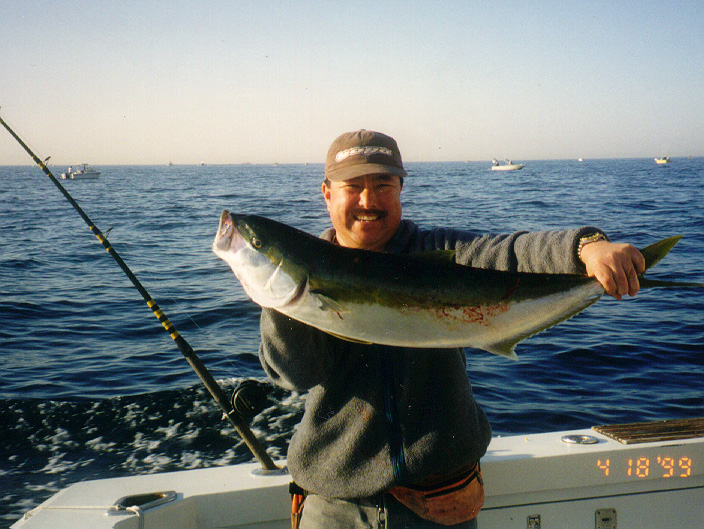 Bruce with our only spring yellowtail. Caught on Troll off South Island. note all the other boats.