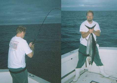 Arno woke everyone up with a good sized albacore caught on bait in the grey light before we started to troll.