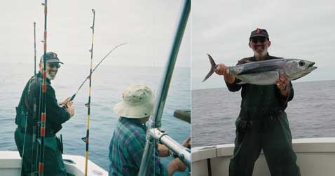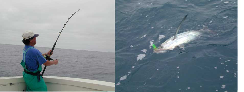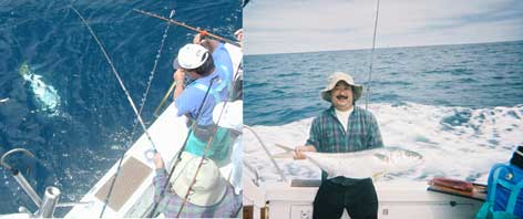 Gregg Sata and Bruce Ito bring another nice yellowtail to the gaff