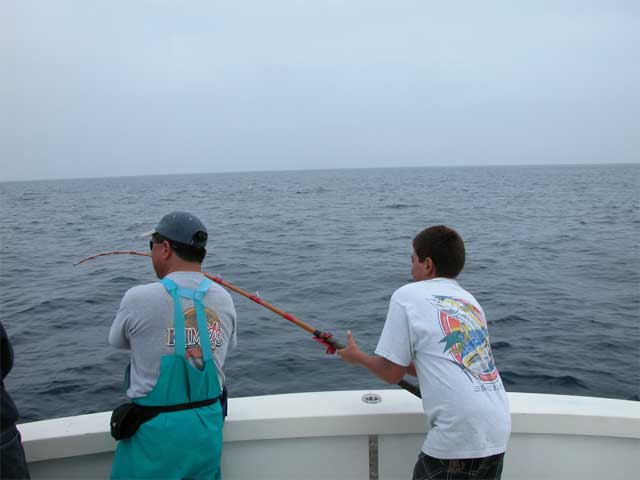 Bruce cranks away on a load of rockfish on the Skippers rod