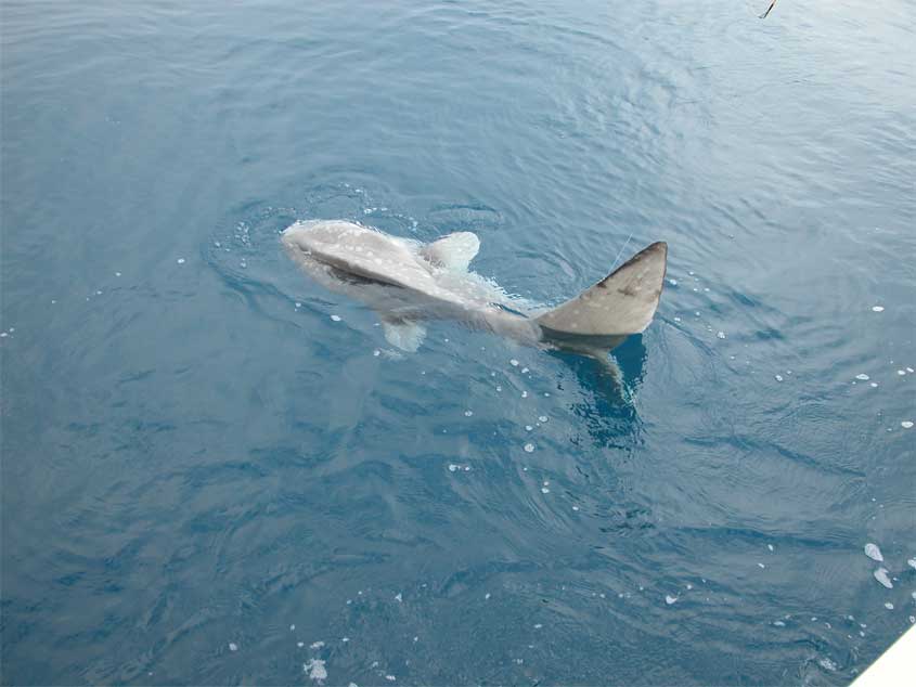 Grant Larson carefully coaxes an 80lb or so Sunfish to the boat