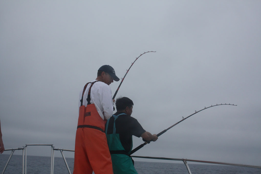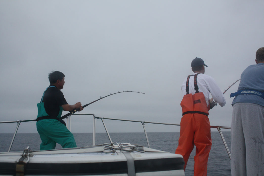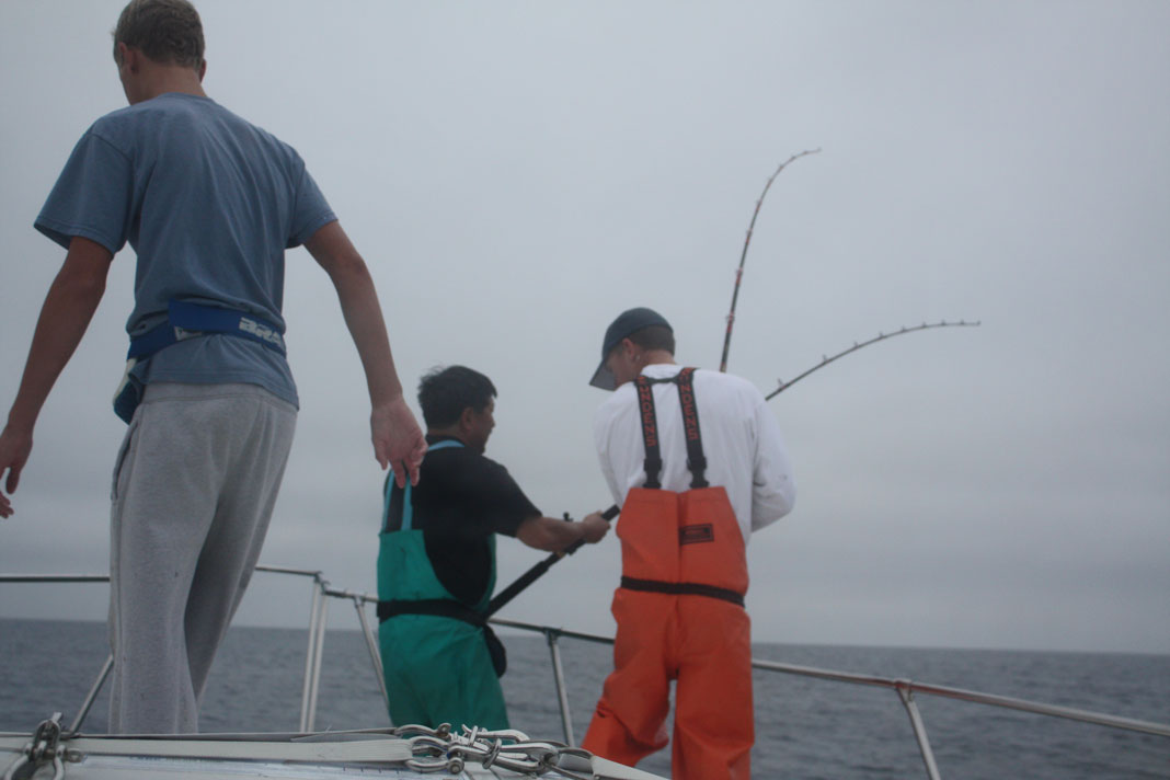 Erich keeps an eye on Grants bluefin also heading to the bow