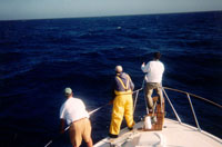 Neal Sullivan works on a large bigeye under the watchful eye of Tom Neuman and son Shane