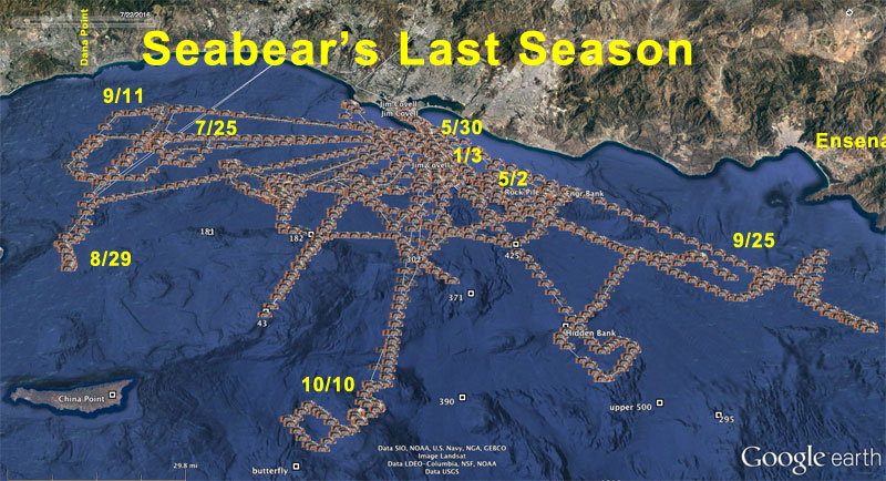 Somehow we managed to get in 9 tuna trips and half a dozen bottom runs. The fishing was simillar to last year. We searched (usually in vain) for the bigger Bluefin and one of the many schools of Yellowfin .We never found that wide open Yellowfin bite but usally managed to find a few on paddies or on spots of breaking fish. The warm water was calm and did offer up a single Shortbilled Spearfish and Wahoo. Both are rare fish in Southern California waters and a result of the warm waters.